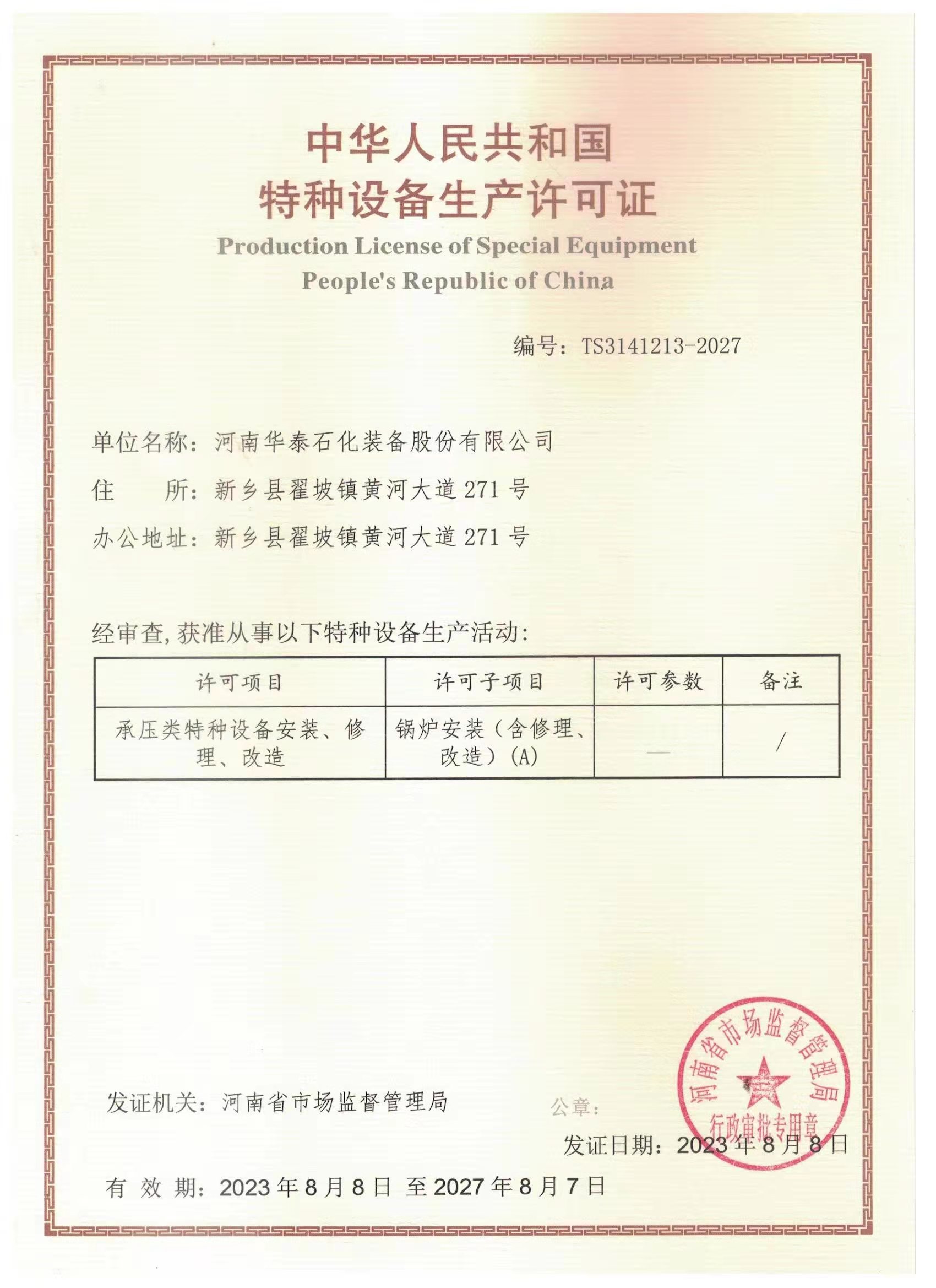 您的当前位置:主页 > 资质荣誉 > > 锅炉安装许可证